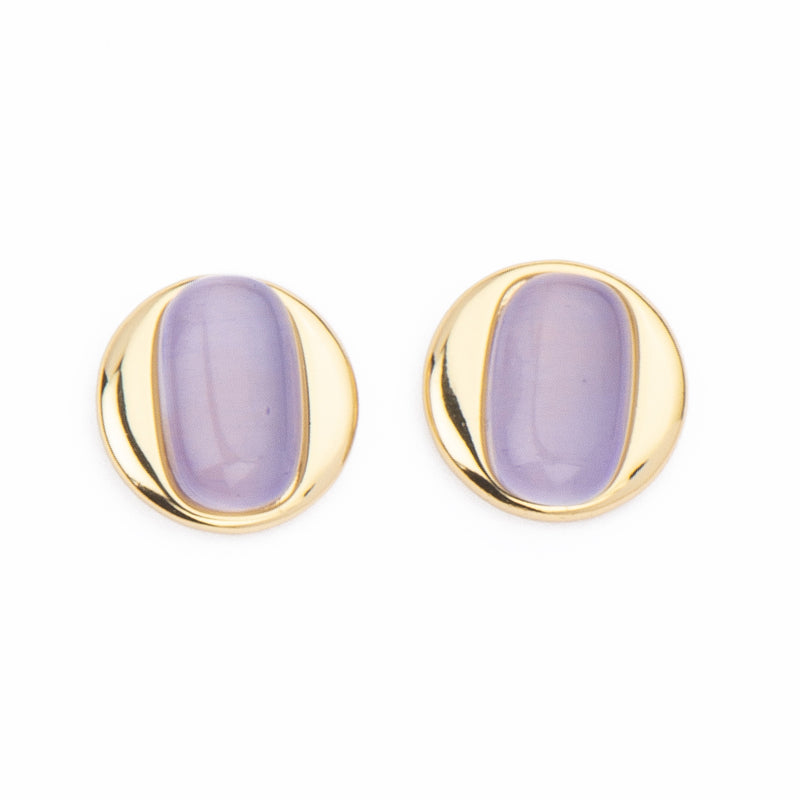 Questi orecchini con top rotondo in brass dorato sono impreziositi da un cat eye dal taglio rettangolare: per un look essenziale, ma d’impatto.