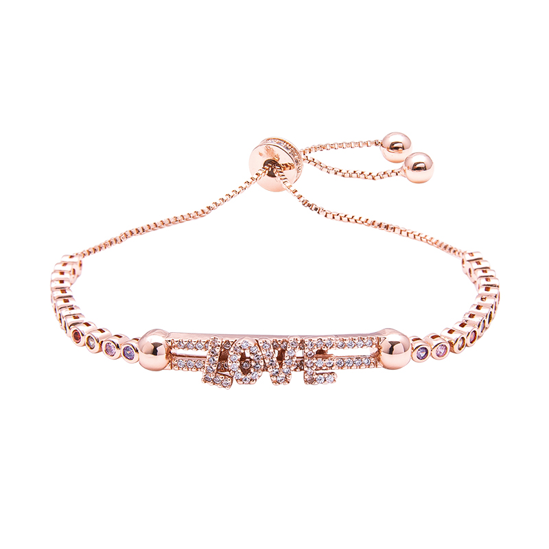 Bracciale regolabile Violette in ottone rosato e zirconi multicolor