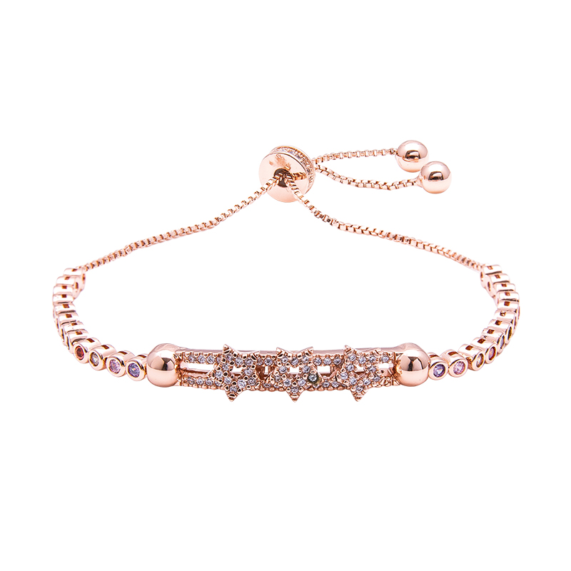 QBracciale regolabile Violette in ottone rosato e zirconi multicolor