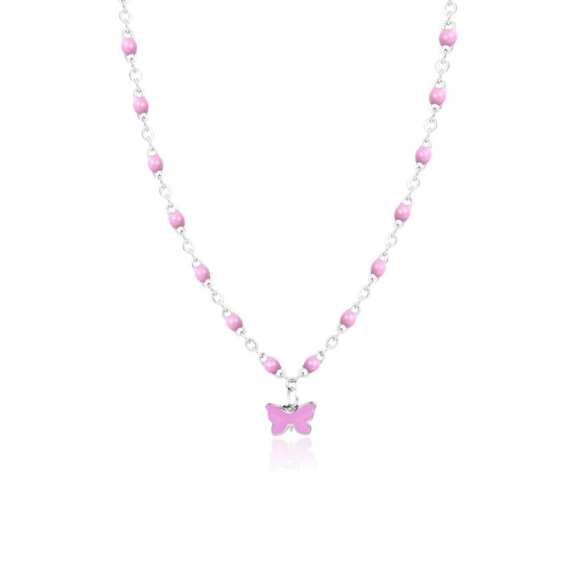 Collana bimba con farfalla pendente viola e drops smaltati viola