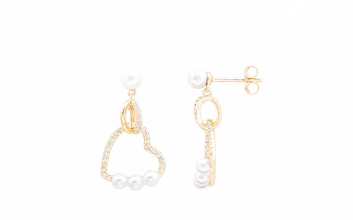 ORECCHINI IN OTTONE RODIATO E ZIRCONI CUORE