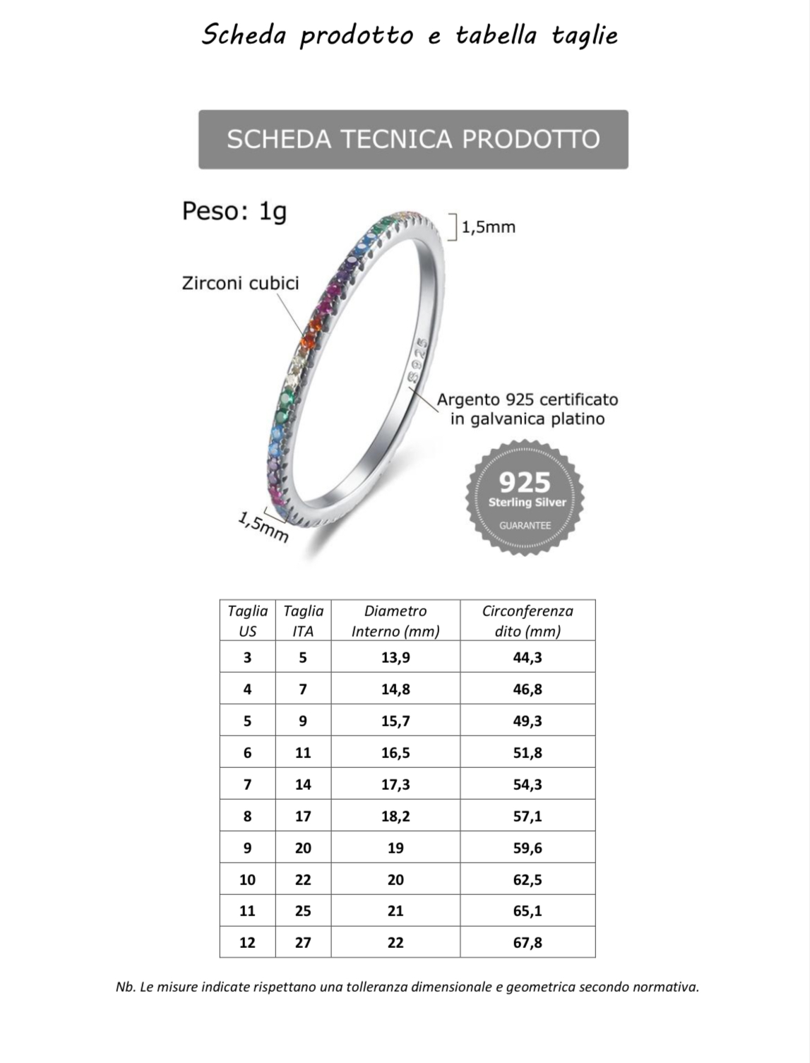 ARGENTO 925, DISPONIBILI NELLE MISURE: