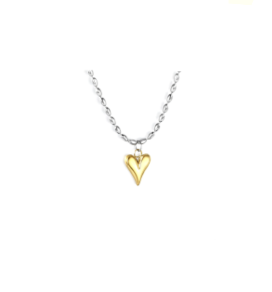 COLLANA IN ARGENTO CON CUORE IN ORO CLASSIC IN ACCIAIO