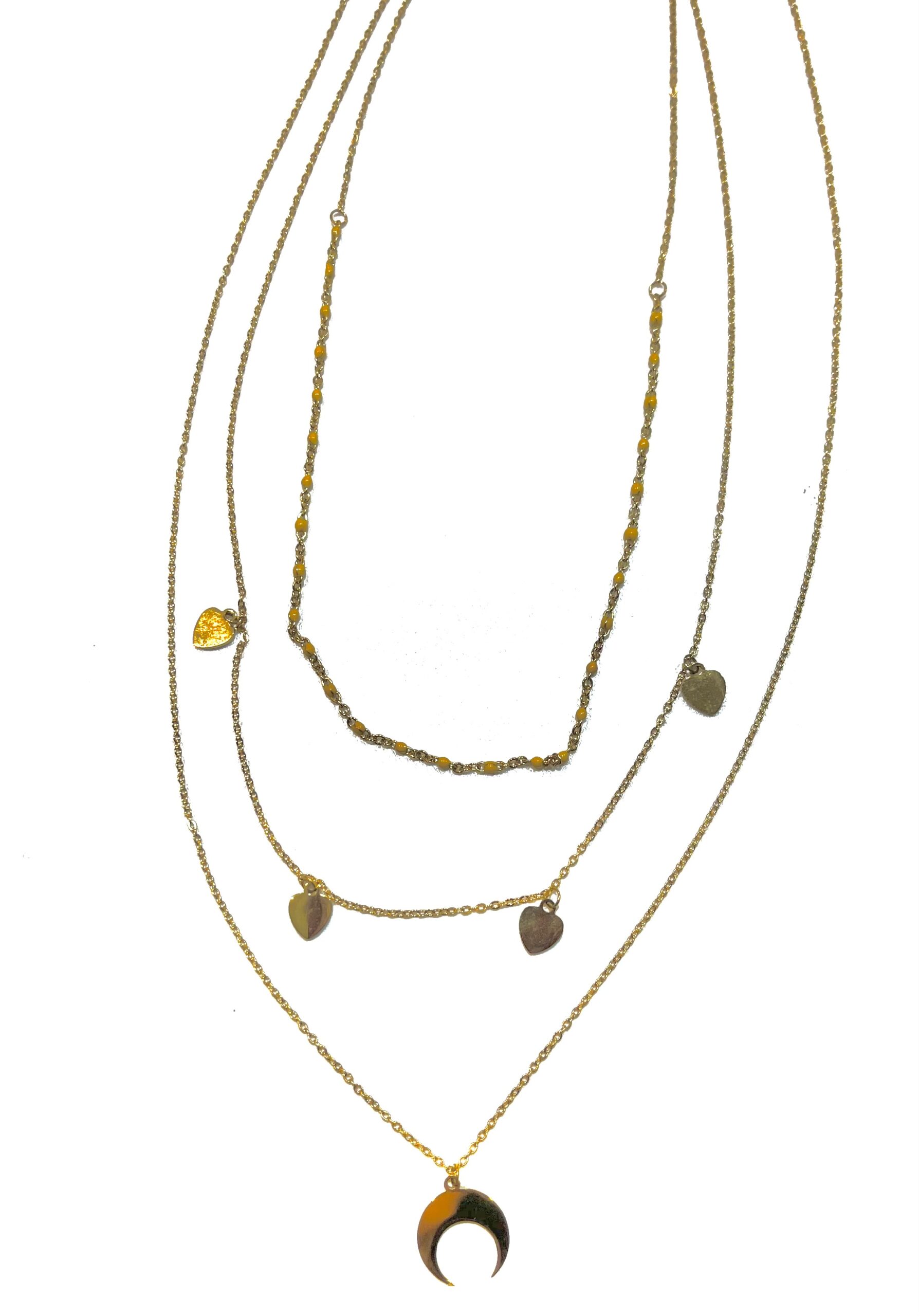 COLLANA CUORI E MEZZALUNA IN ACCIAIO